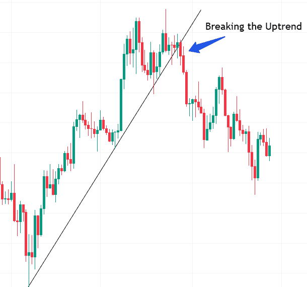 - This picture shows the end of an uptrend, then a break of that trend, and that is a break of structure.